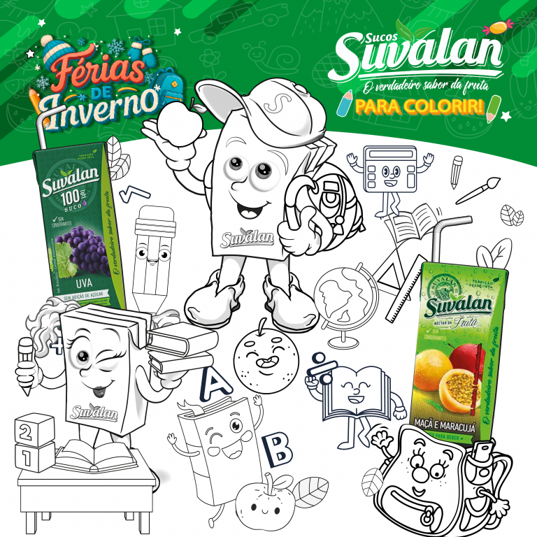 O Suvalito – um menino do bem, que preserva a natureza e recicla o lixo. Ama ecologia e adora descobrir coisas novas, sempre pesquisando e aprendendo. Adora brincar na rua com amiguinhos e controla o tempo de tela no celular e computador. Se alimenta de frutas e vegetais, toma bastante água e Suco 100% Fruta.